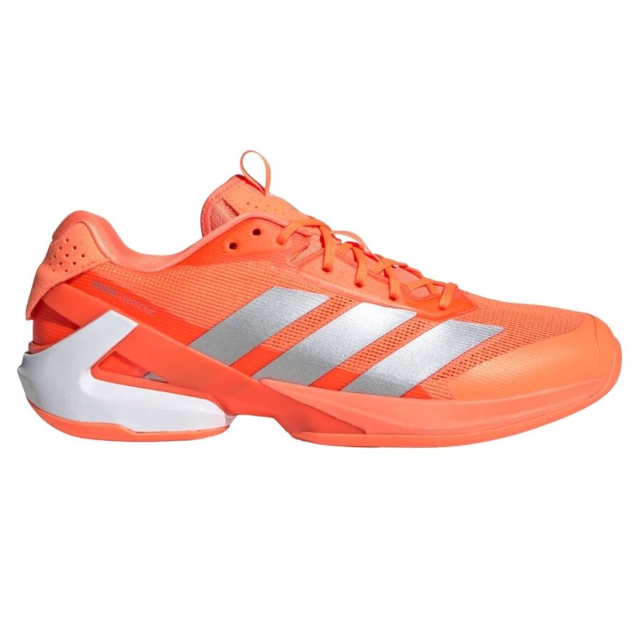 Adidas Adizero Ubersonic 5 er skabt til lynhurtige bevægelser og maksimalt tempo på banen – nu i en markant orange og sølv farvekombination, der skiller sig ud.