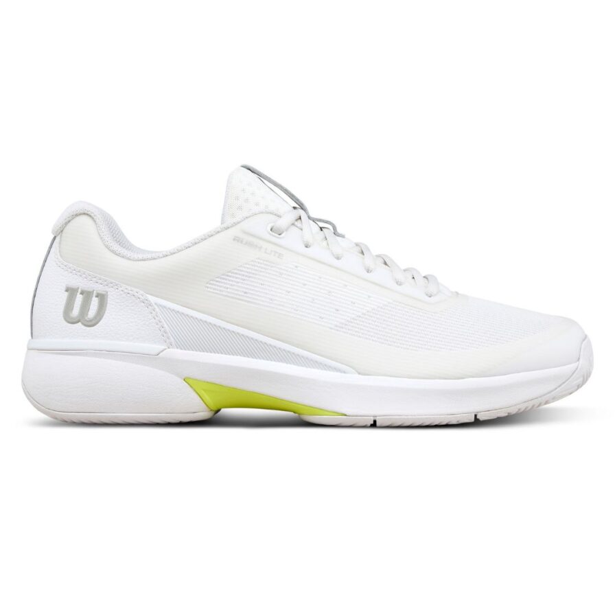 Wilson Rush Lite 5 White er udviklet til spillere på alle niveauer, der vil bevæge sig hurtigt og sikkert gennem hele kampen. Den kombinerer en let konstruktion med stabil støtte omkring mellemfoden, så du får en naturlig og komfortabel pasform fra første skridt. Den åndbare mesh-overdel former sig efter foden og sikrer god ventilation, mens den bløde og responsiv mellemsål giver komfort – selv under lange og intense dueller. Samtidig er skoen forstærket på indersiden, så den holder bedre ved slides og hurtige opbremsninger.